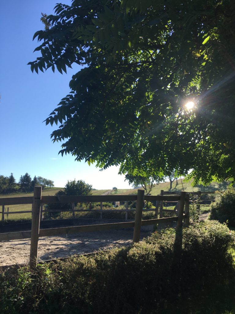 Und manchmal, wenn die Zeit da ist, gehe ich in der morgendlichen Stimmung, wenn alles noch schläft, hoch auf die obere Koppel. Dort oben, da steht ein Apfelbaum, mit super leckeren Äpfeln. Wenn ich dann da oben stehe, mit dem frisch gepflückten Apfel in den Händen und auf die still daliegende Academie und das Land um sie herum hinunter schaue, erfüllt mich ein Gefühl von Ruhe, Gelassenheit und Freiheit.